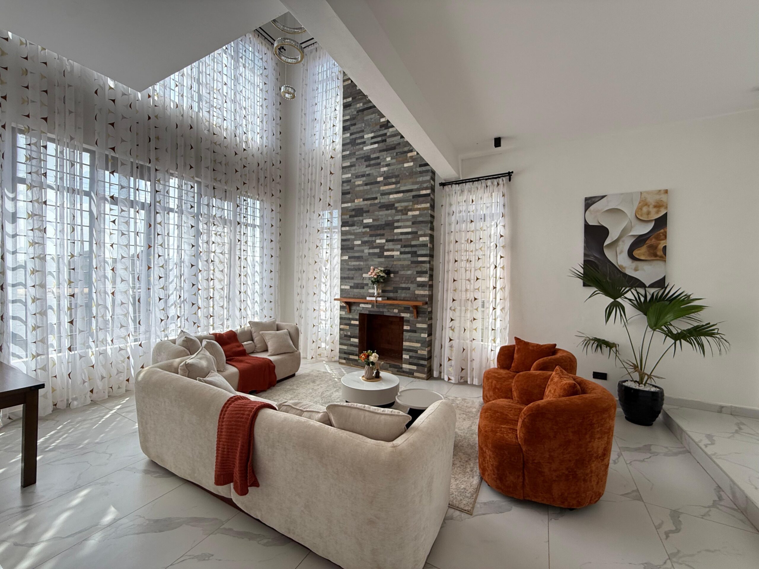- Expansive lounge with fireplace and double height ceiling