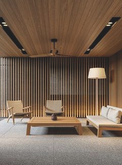 - Indoor relaxation room with lockers and showers