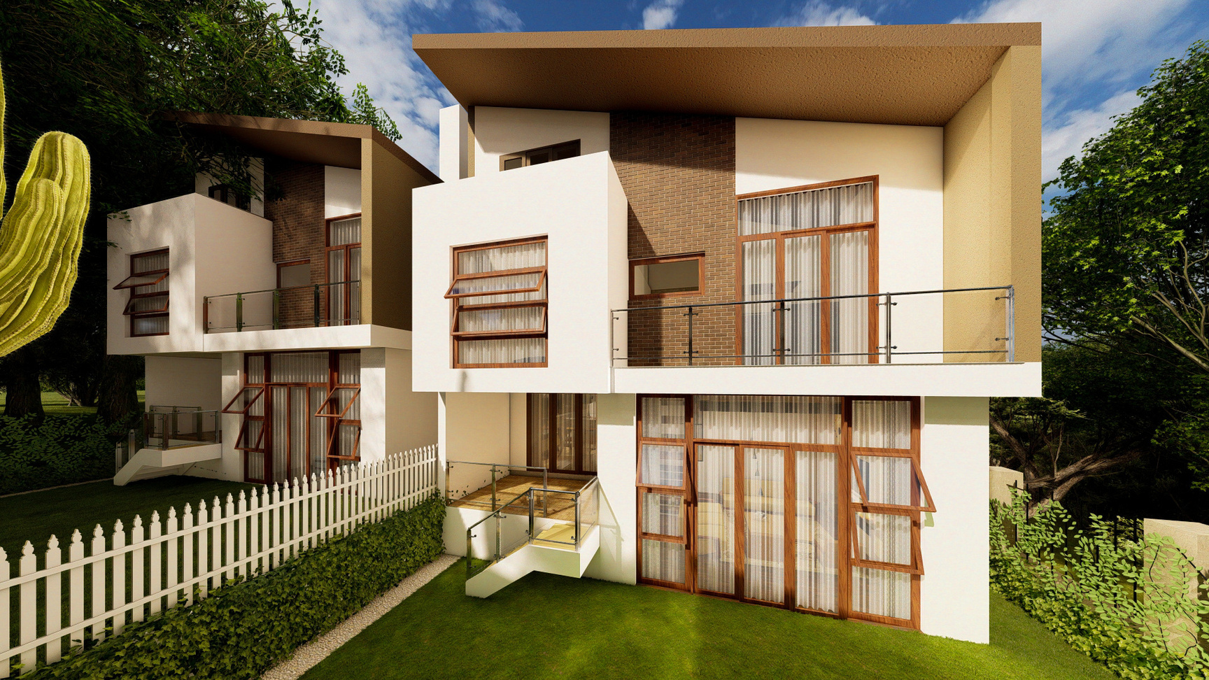 - Picket fence dividing houses, ensuring privacy without obstructing views