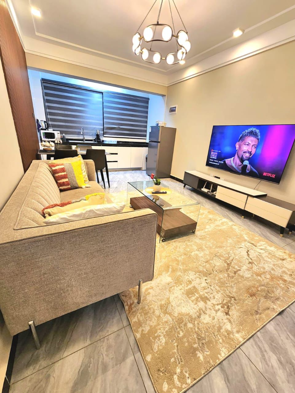 - Spacious living area with elegant furniture and smart layout